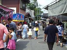 乙津寺までの道の両脇には露店がたくさん出ています。この日は暑かったのかいつもの1/3程度のお店の数しかありませんでした。 乙津寺に通ずる道(午後)